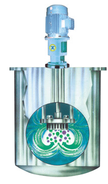 工作原理:高剪切、均質混合乳化機是一對組或若干組高速旋轉的轉子和定子組成,高速旋轉的轉子將物料從容器底部吸入轉子區,承受強烈的混合剪切作用,物料被近通過精密配合的定子與轉子間隙后,從定子孔中甩出,在此過程中,承受劇烈的機械及液體的剪切作用,將顆粒撕裂和粉碎,與此同時新物料被吸進了中心,被推出的物料在容器壁面改變方向,再進入轉子區承受剪切片作用,從而使物料徹底細化,均質,分散,達到剪切效果。